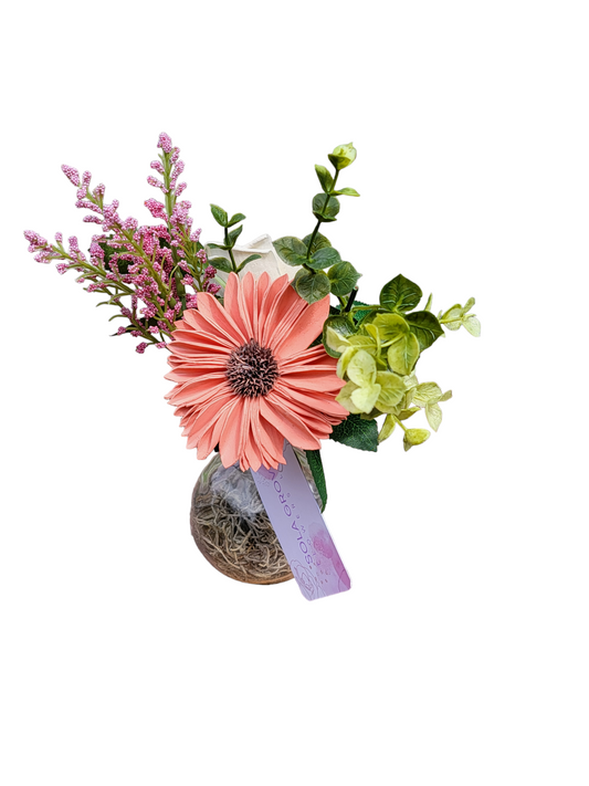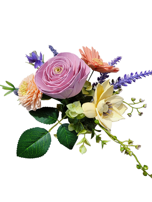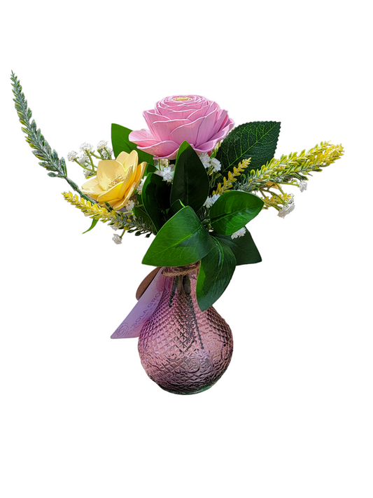 Woodland Pink and Green Wood Flower Vase Arrangement