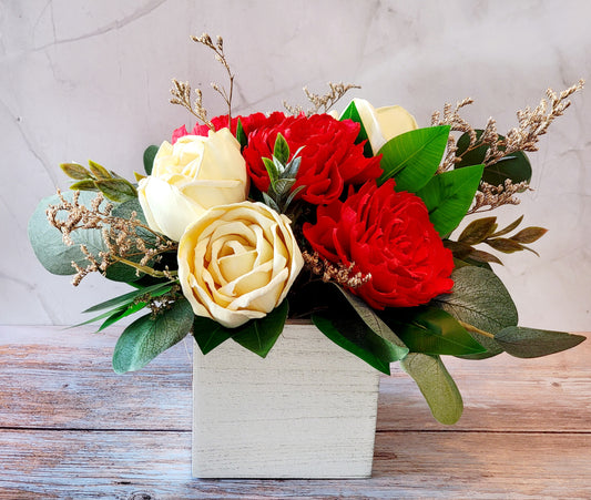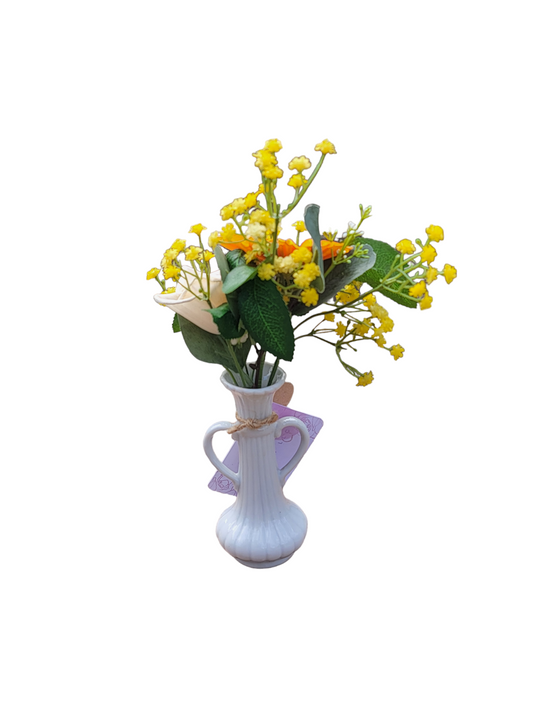 Happy Sunflower and Rose Wood Flower Vase Arrangement