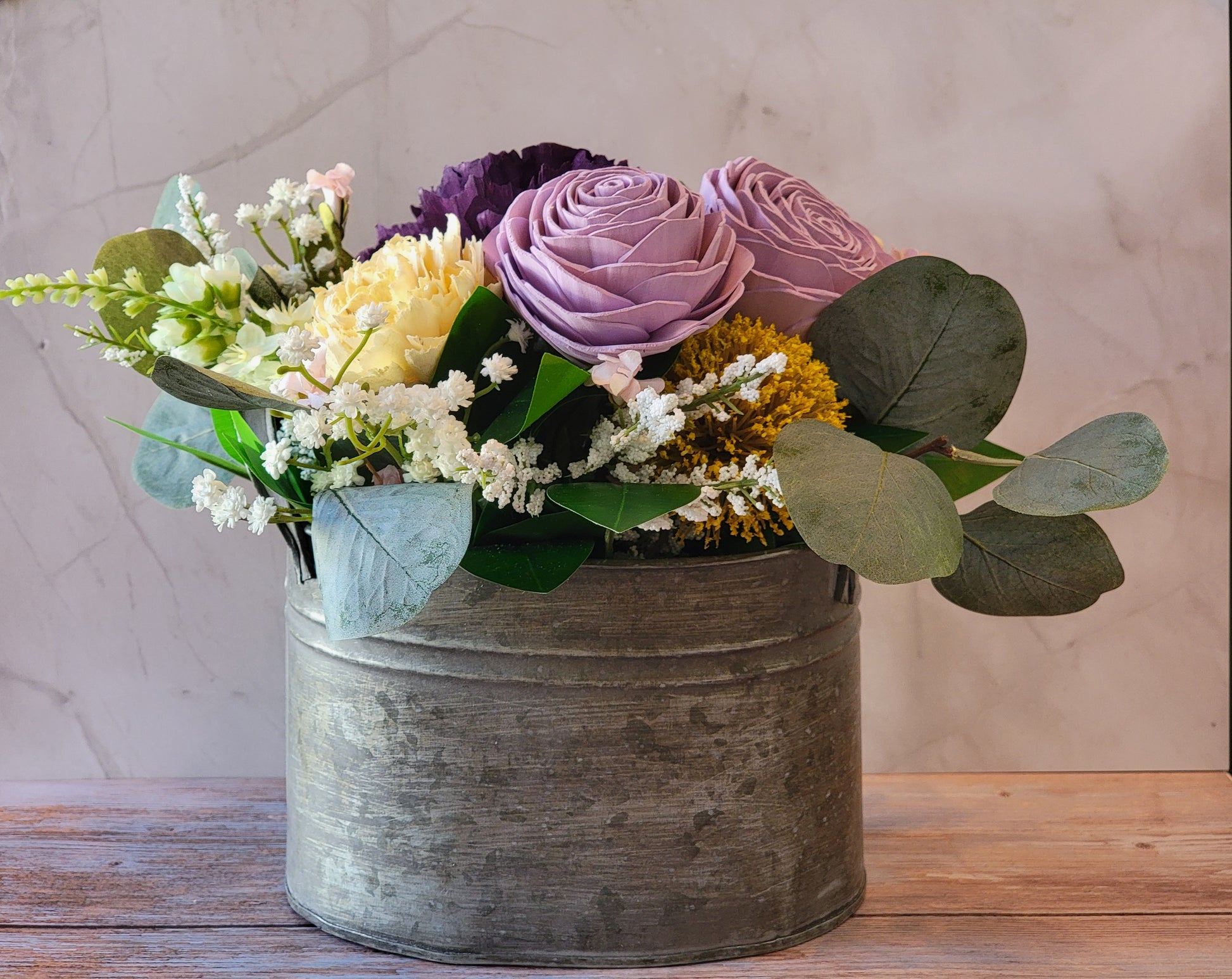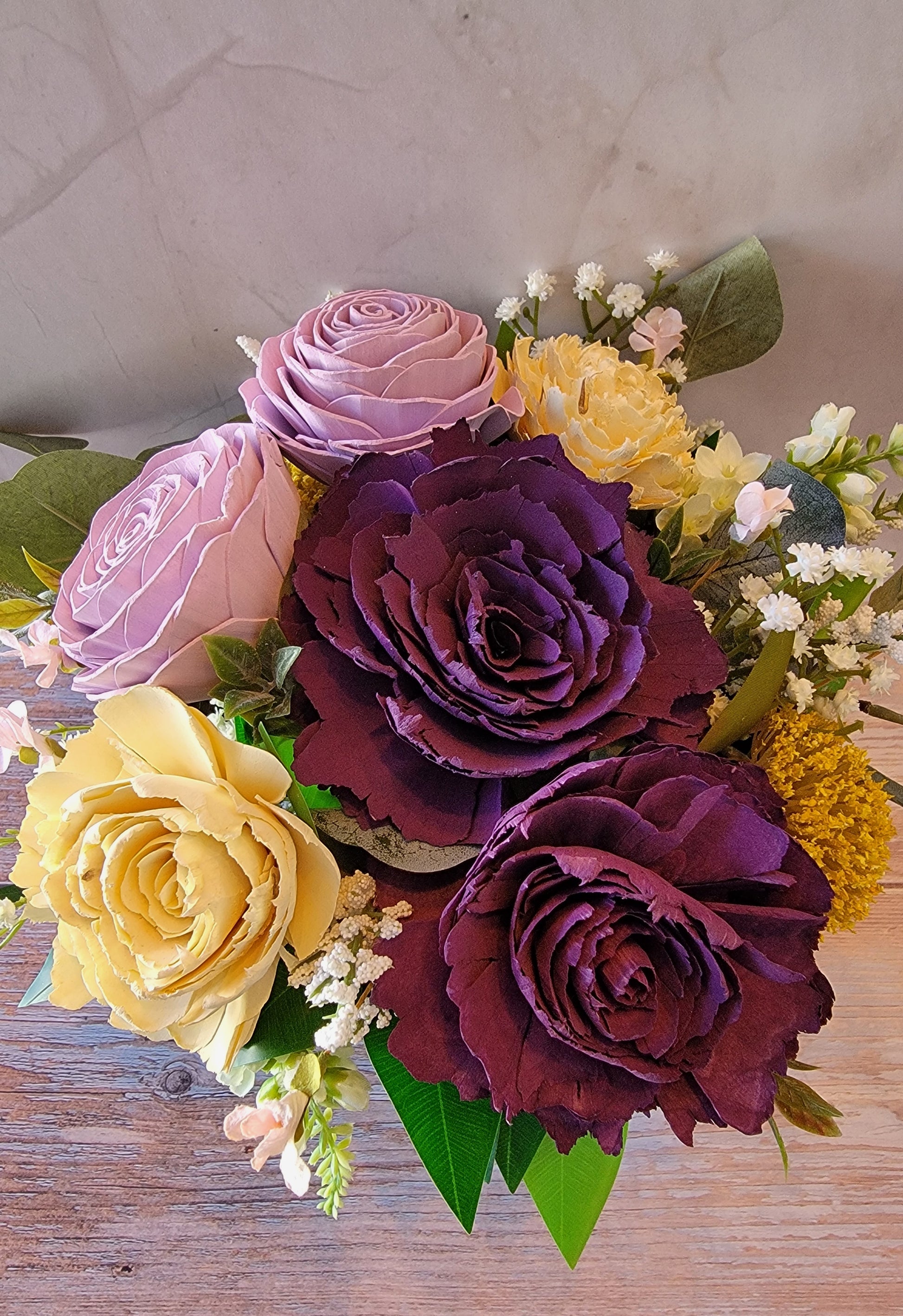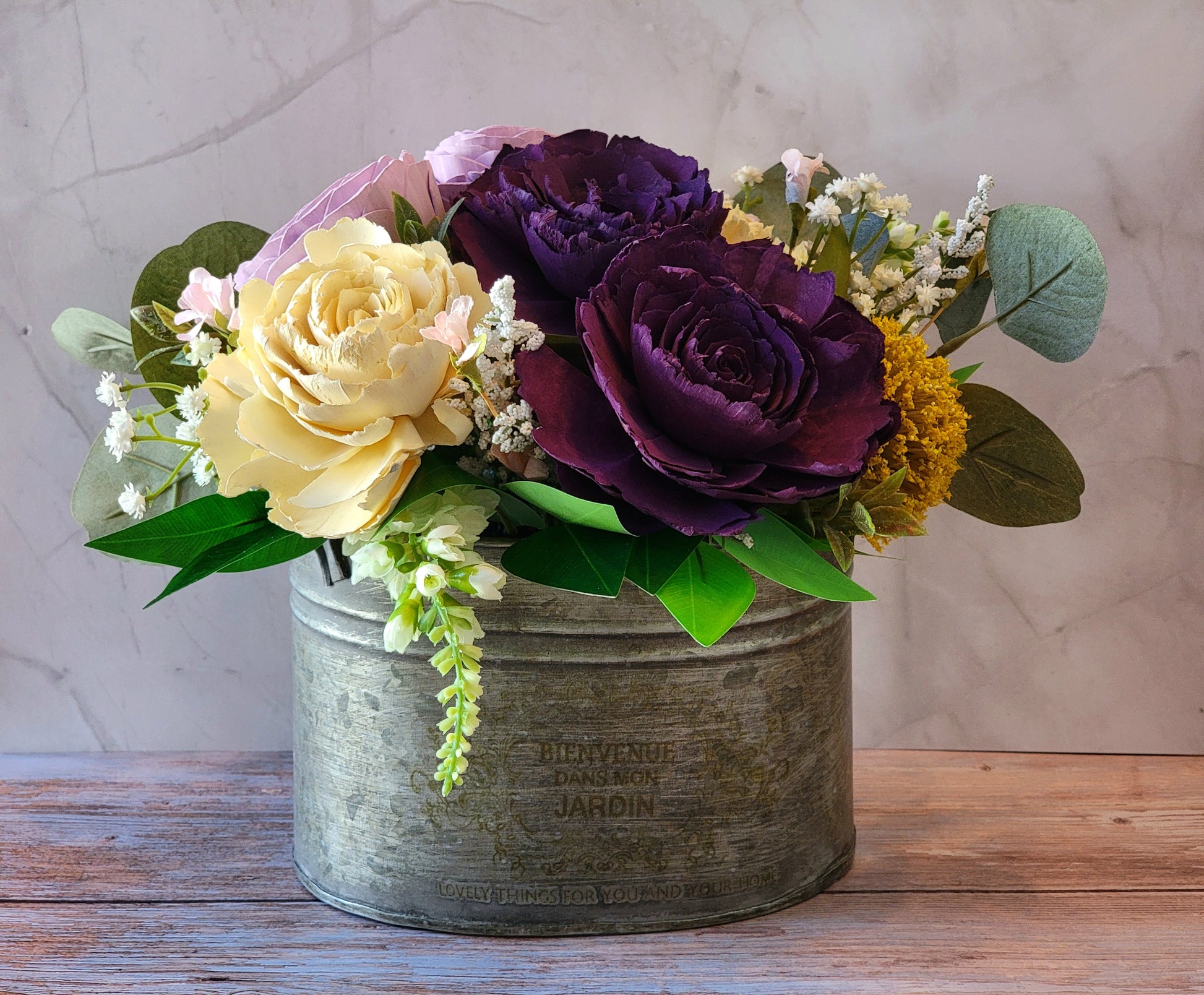 Purple & Yellow Wood Flower Arrangement