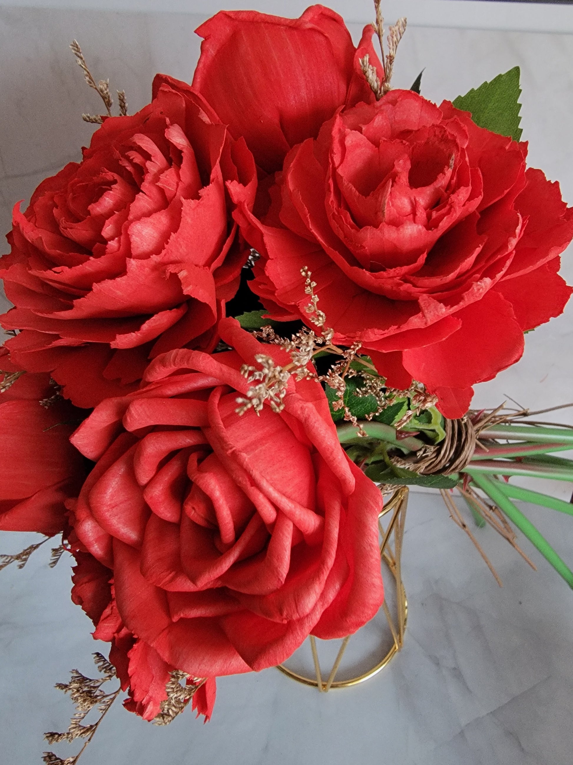 * Handcrafted with wood flowers
