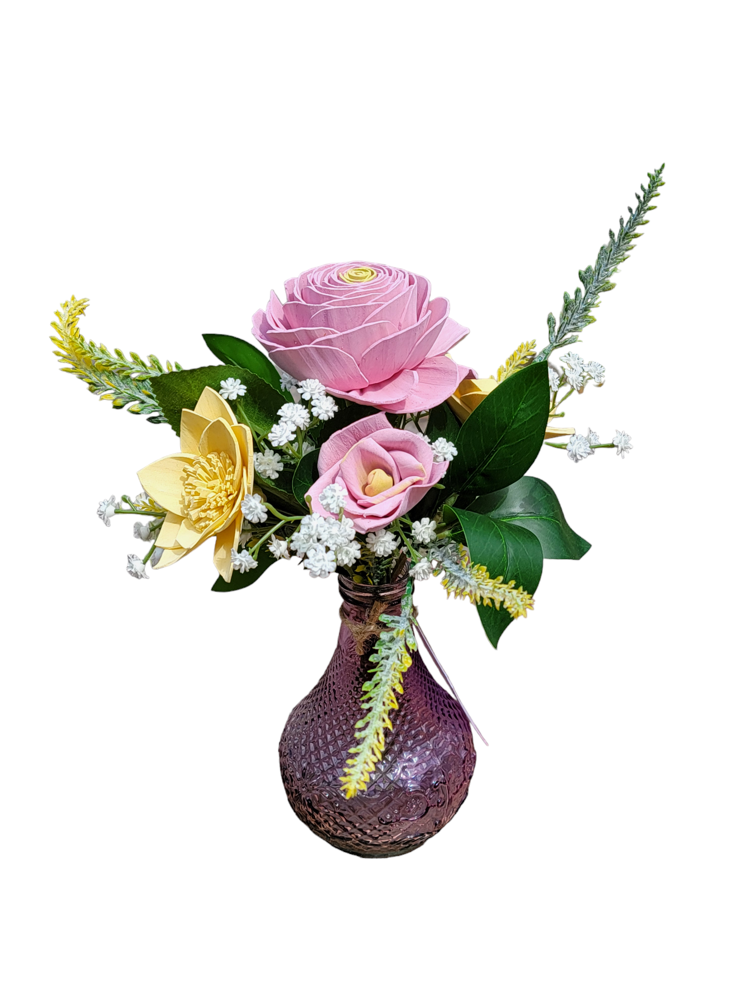 Pink and Yellow Wood Flower Vase Arrangement