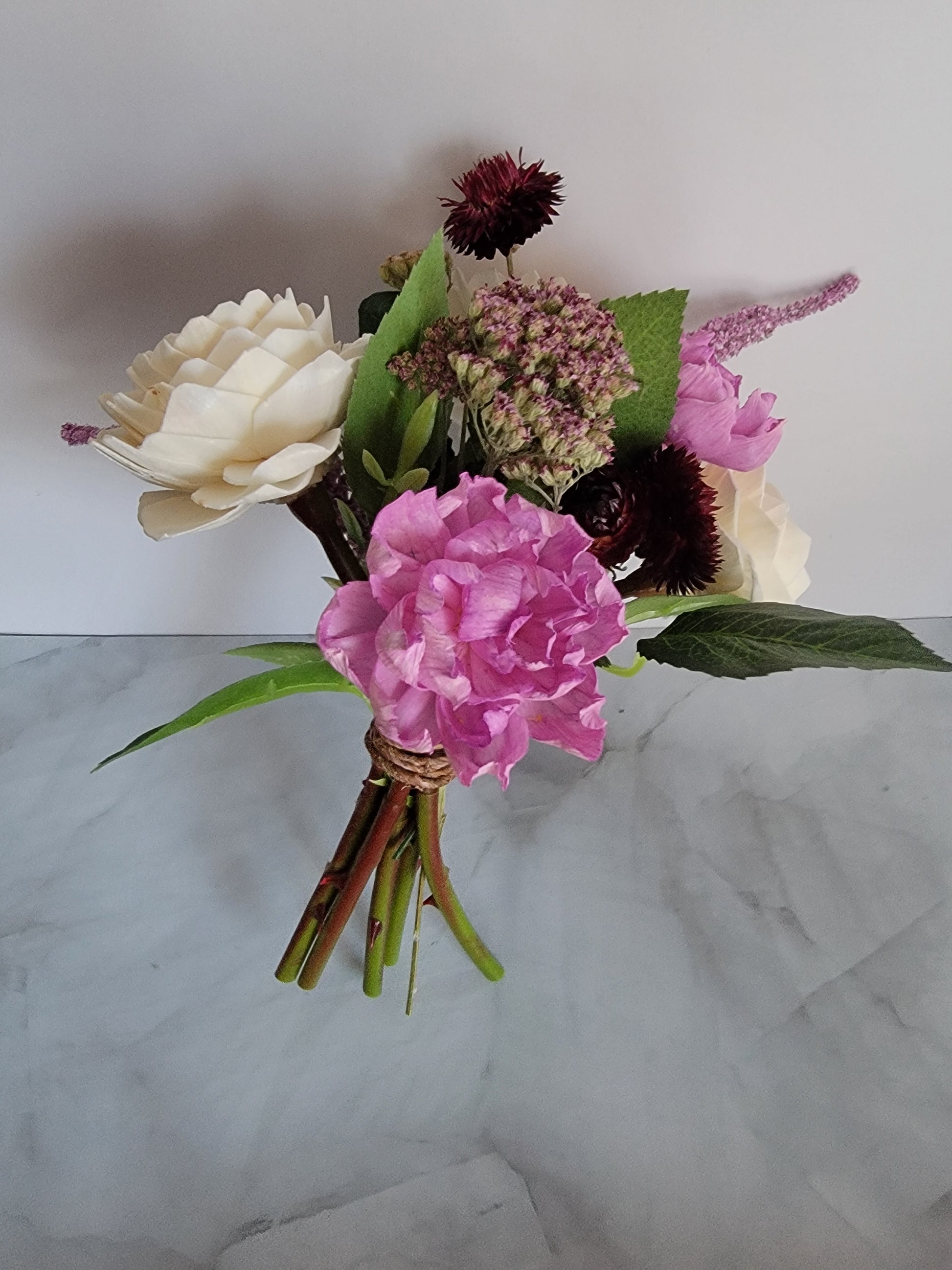 Made with wood flowers and carefully selected coordinating accents, these bouquets offer the charm of fresh florals with the lasting beauty you can enjoy for months (and years) to come. Every arrangement is hand-tied in our studio, making each piece uniquely beautiful.